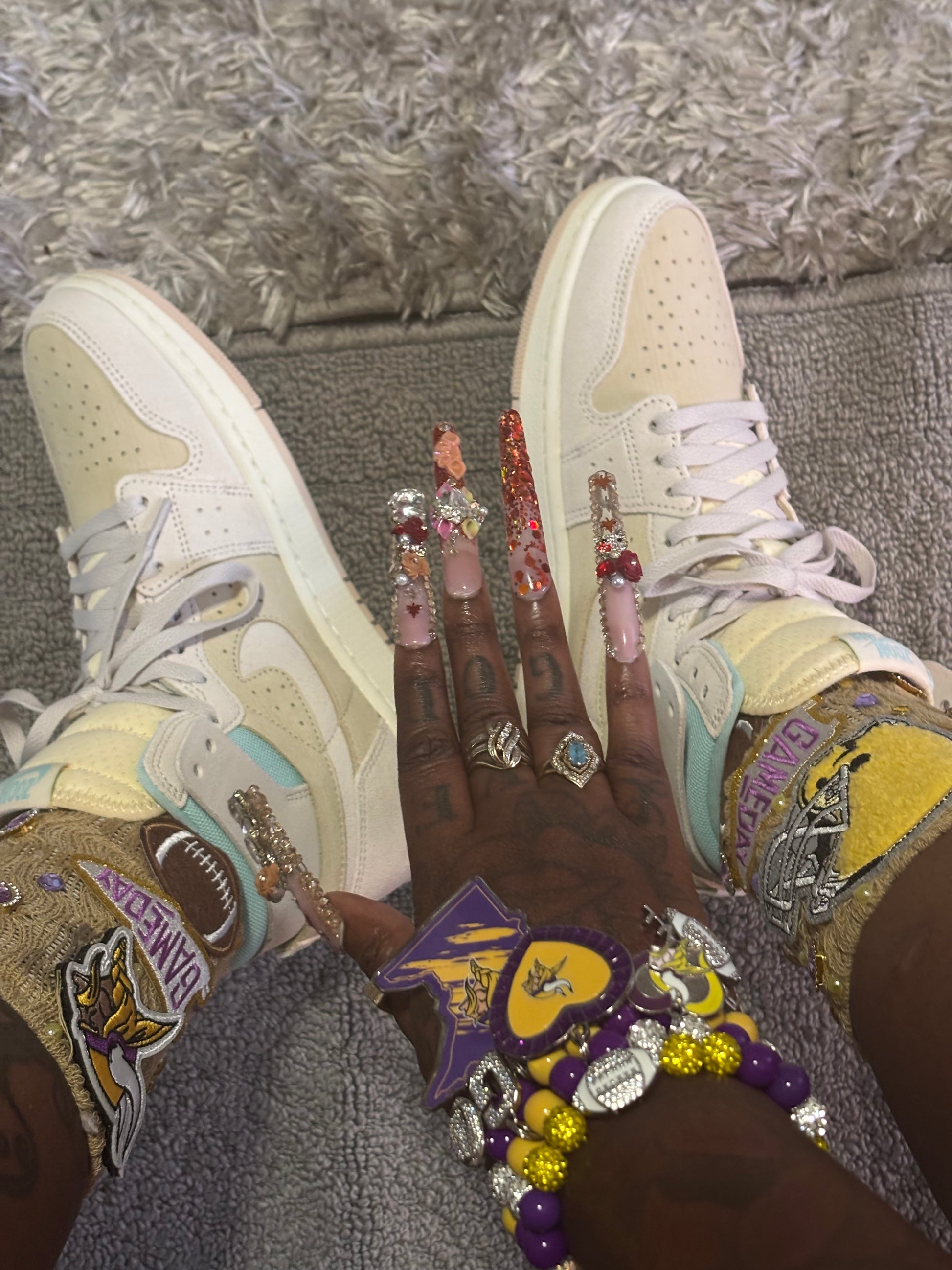 Rep your favorite sports team the “LUX” way!!! Luxurious handmade bedazzled socks, created to perfection for the fashionable diva!!! ALL SOCKS ARE CREATED WITH PATCHES, RHINESTONES ETC.Socks are made to order so please allow 2-3 weeks(maybe sooner) for your order to be fully completed as I gather unique items to “SLAY” your socks. Socks can also be made with matching beaded bracelets by choosing that opinion. I look forward to creating your next pair of socks the “LUX” way!!! LEAVE YOUR TEAM CHOICE IN NOTES SECTION AT CHECKOUT AND I WILL CREATE BASED ON TEAM COLORS.