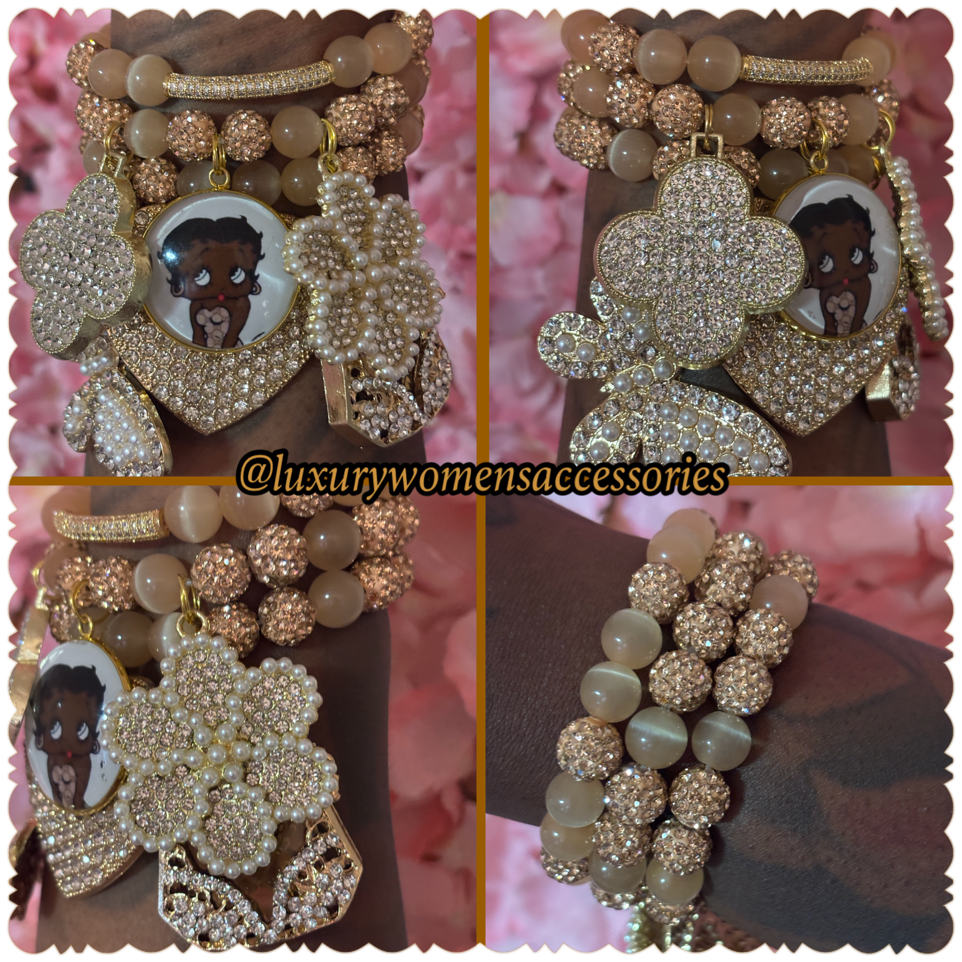 Beautiful set of 3 luxurious beaded bracelets fit for a queen!!!! Bracelets fit size 7-7 1/2 inch wrist and bracelets has minimum stretch.