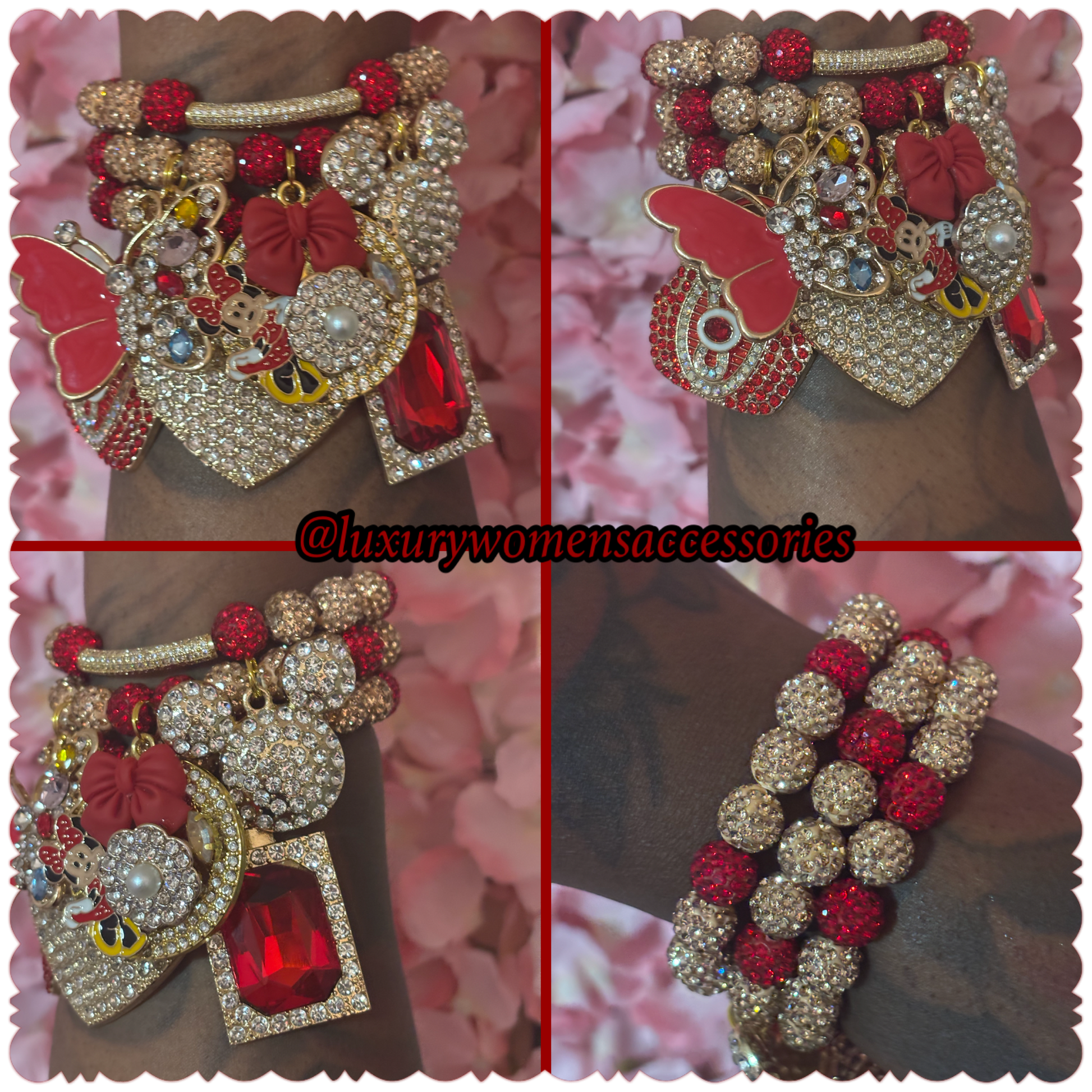 Stylish chunky beaded bracelets with beautiful matching charms perfect for any bracelet lover!! Bracelets fit size 7 1/2 inch wrist and has minimal stretch.