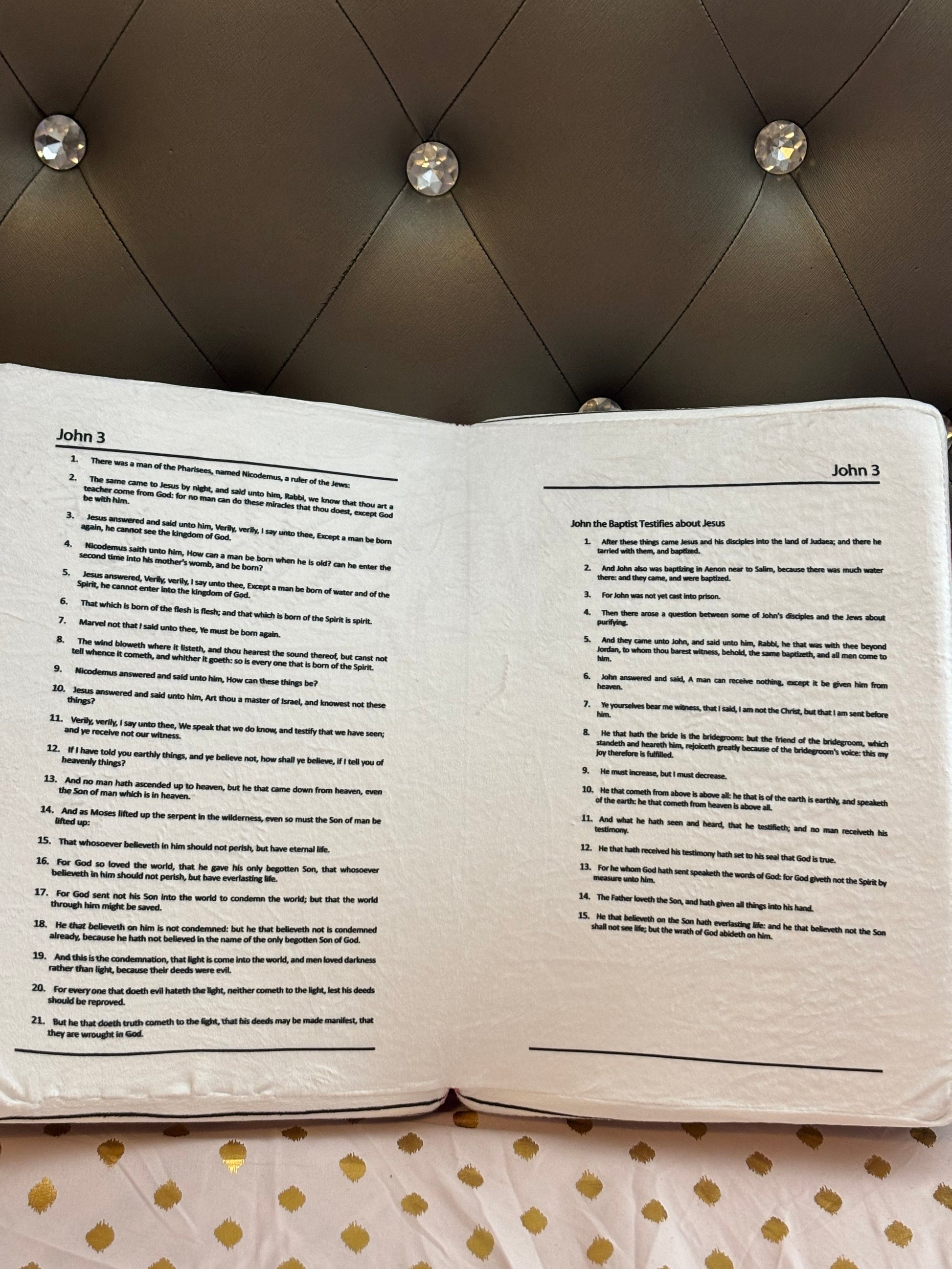 Beautiful decorative memory form Bible pillow is great for any one who loves the Bible. Pillow comes in a vacuum sealed bag and once open pillow will form to its full size. Available in multiple colors. Bible pillow has actual Bible verses. Pillows are on hand and ready to ship!!!