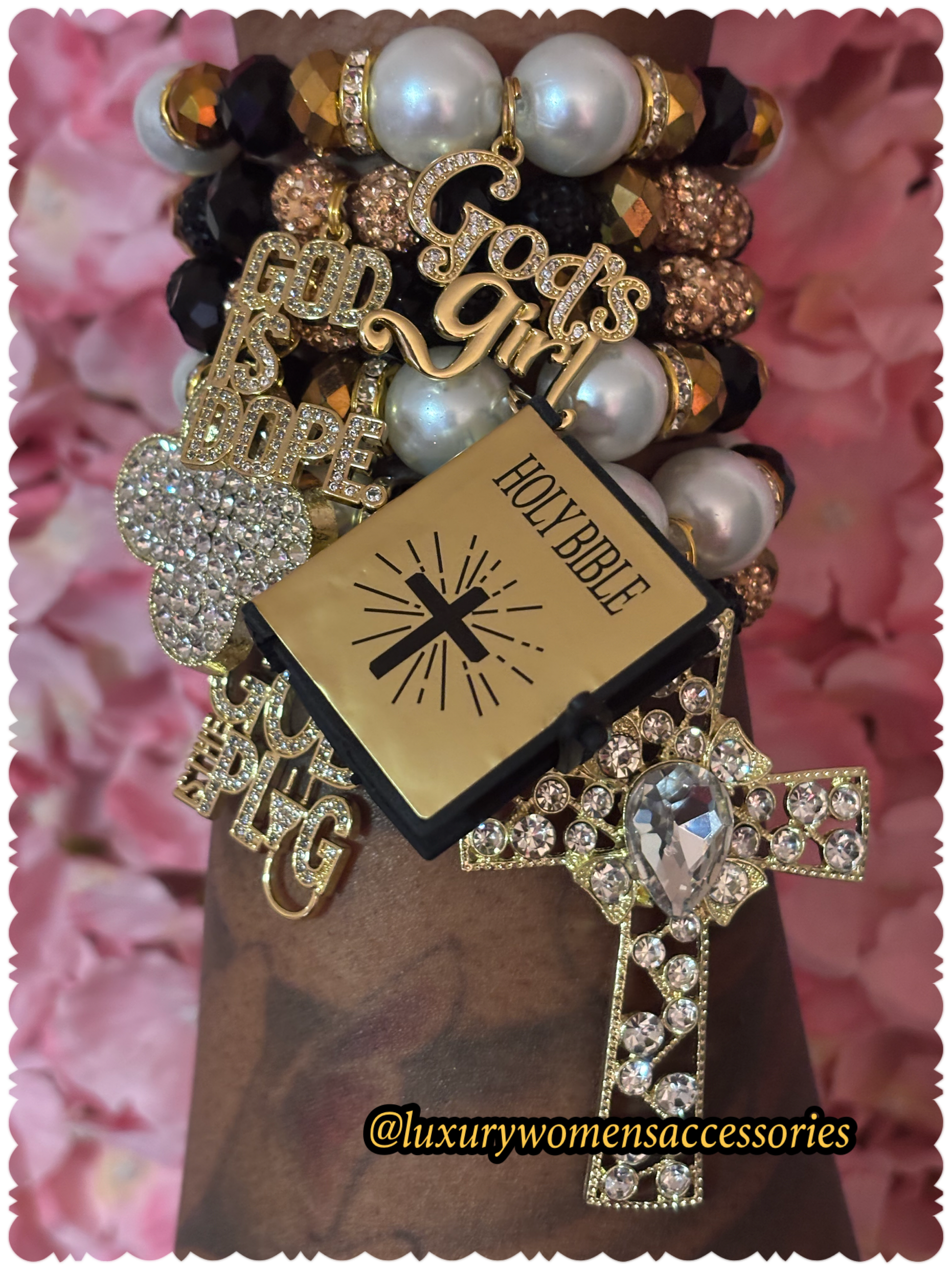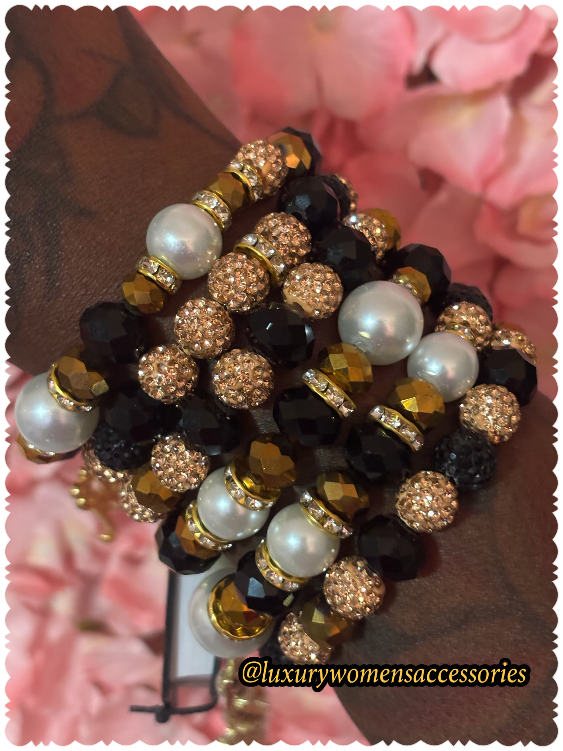 Bracelets fits size 7 1/2 inch wrist and has minimum stretch.