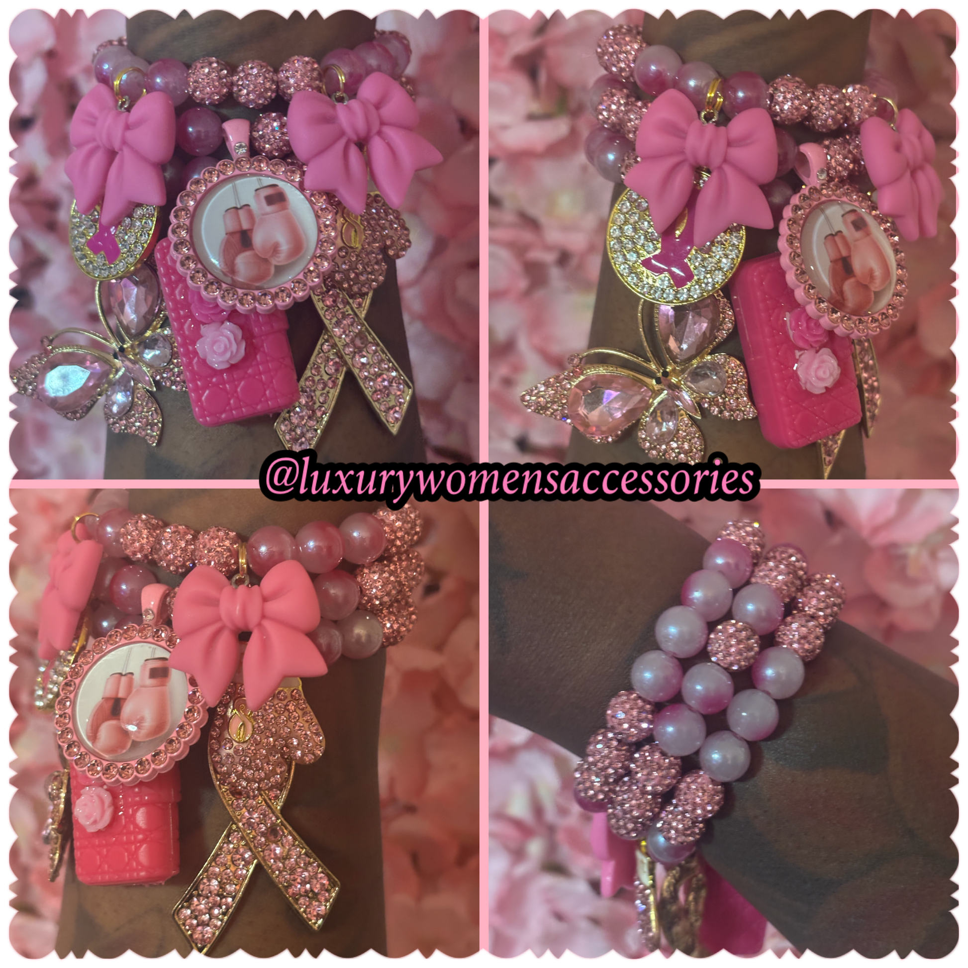 Set of 3 beautiful 10MM beaded bracelets, bracelets are beautifully handmade with 8 stylish matching charms fit for a diva!!!! Bracelets fit size 7 1/2 inch wrist and bracelets has minimum stretch.