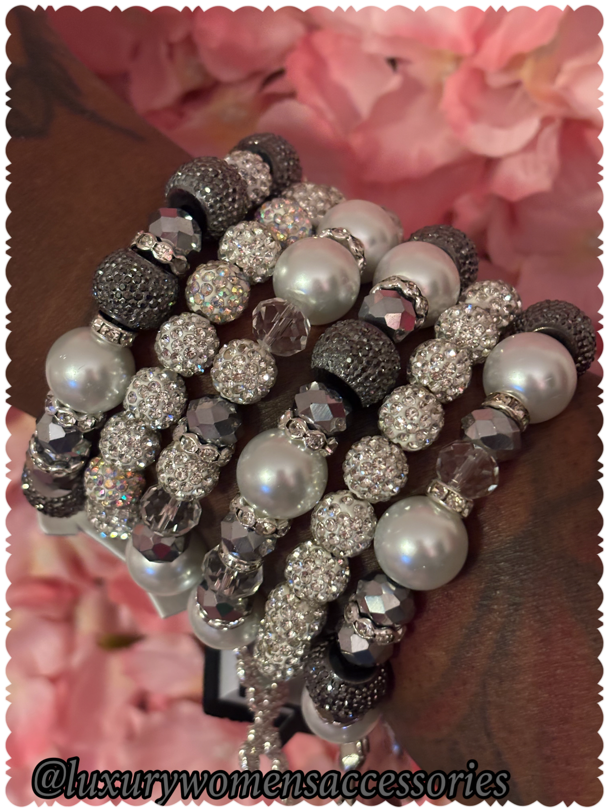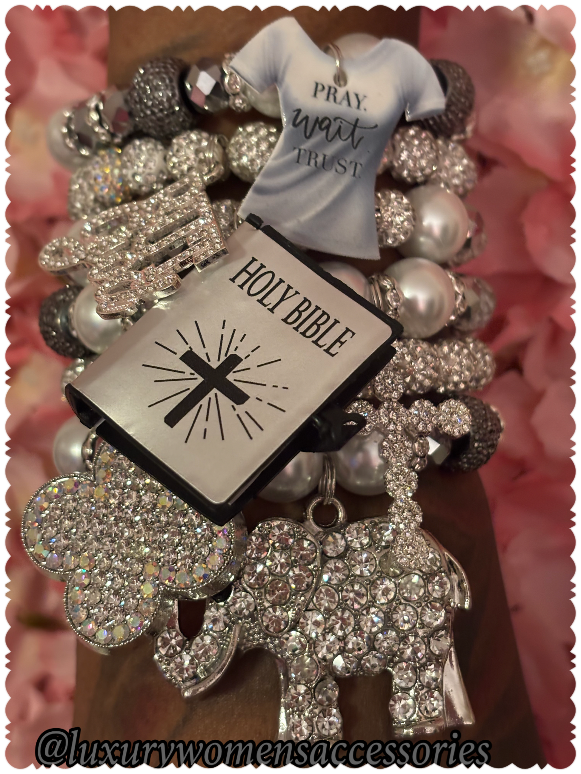 “Custom” “Luxurious” Silver Religious Beaded Bracelet Set(set of 6)(Made To Order)