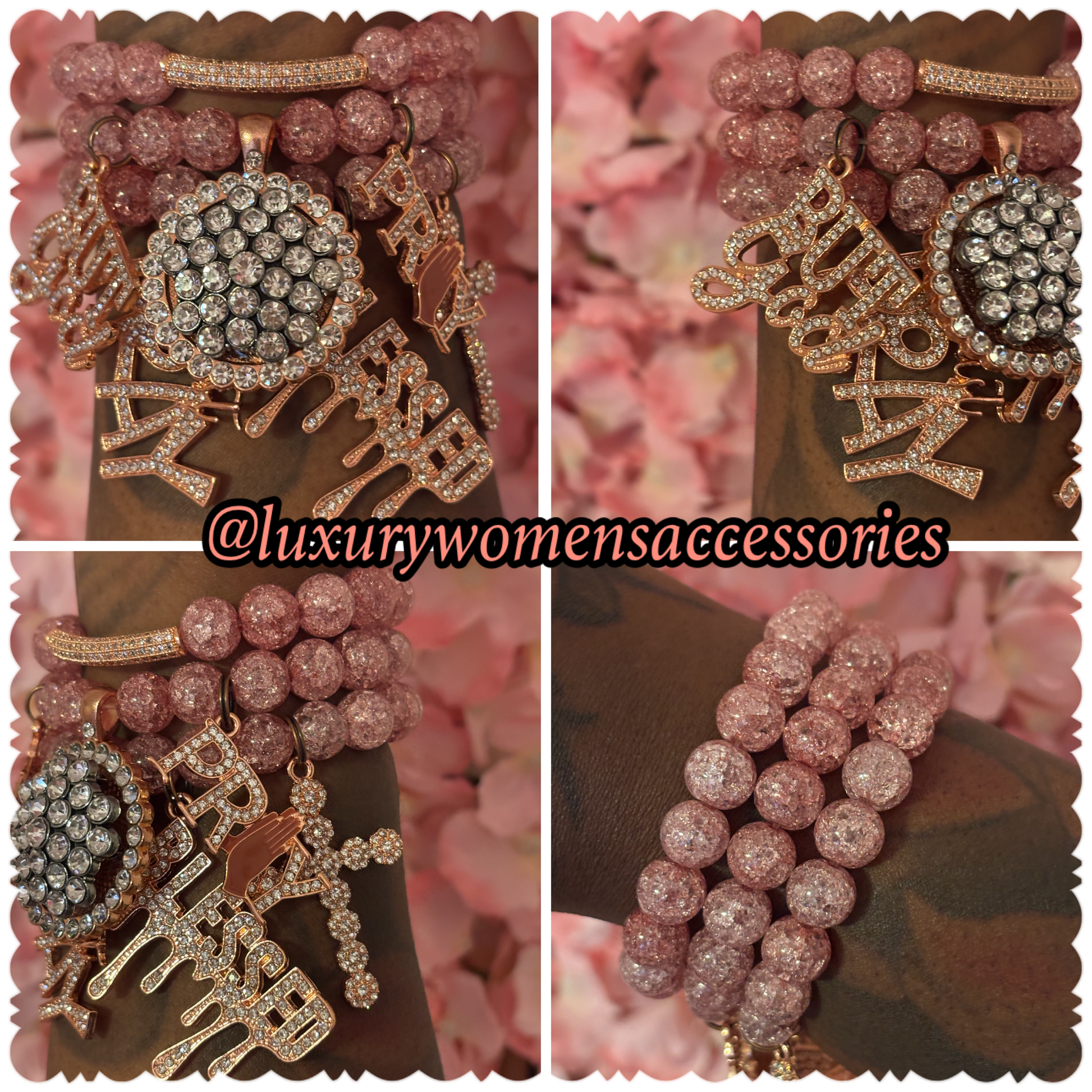 Beautiful set of 3 beaded bracelets, remember when times get hard just pray!!!! Bracelets fits size 7 1/2 inch wrist and has minimum stretch. IF YOU NEED A DIFFERENT SIZE ADD SIZE ADJUSTMENT TO ORDER, WILL NOT BE ADJUSTED WITHOUT ADDING SIZE ADJUSTMENT!!!