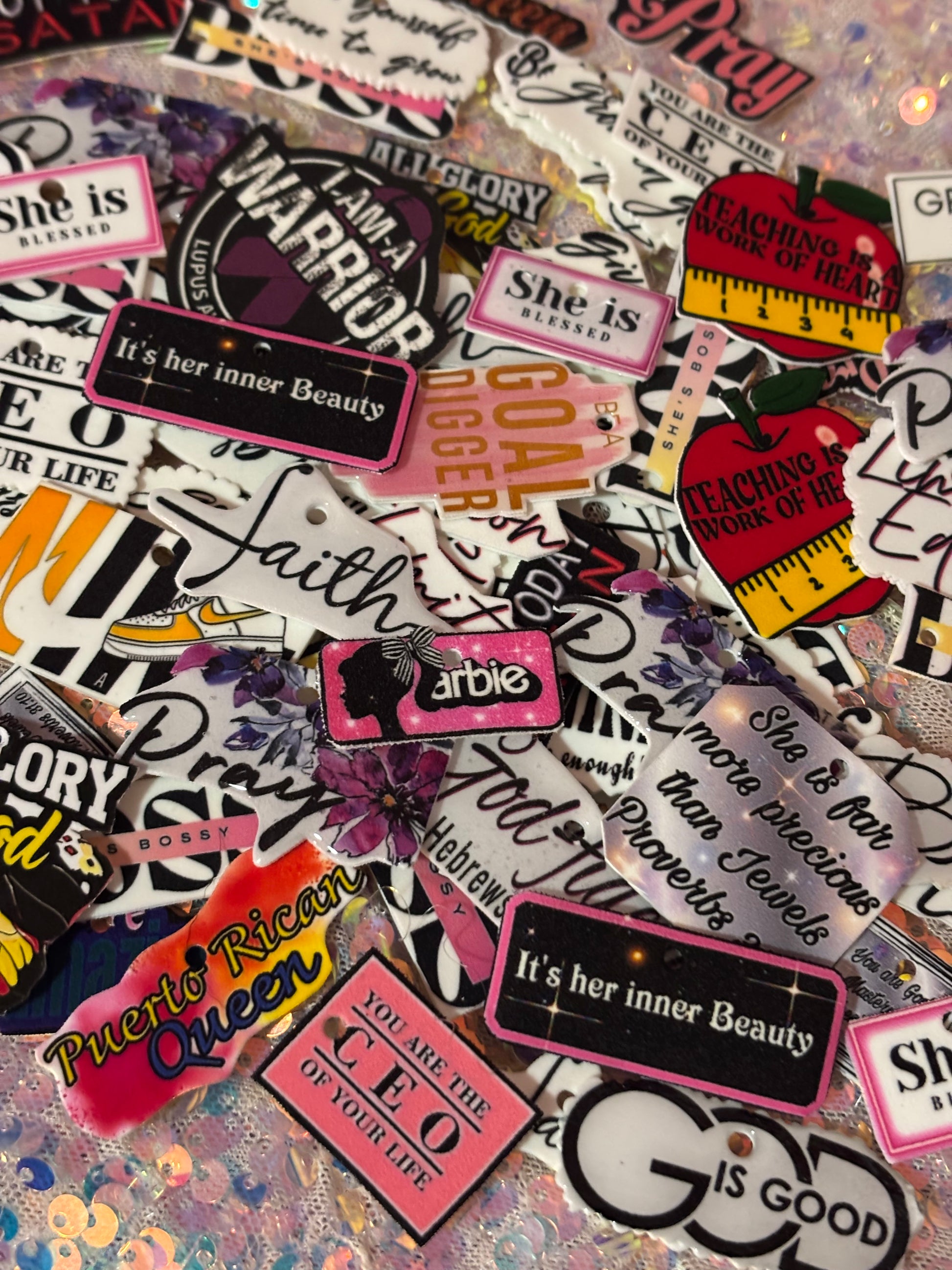 Beautiful “fashion” resin charms, great for DIY jewelry making. Charms comes in set of 10 sold. Charms are glossy and has holes. THE MAJORITY OF CHARMS ARE RELIGIOUS QUOTE CHARMS, BUT SOME NON RELIGIOUS ARE AVAILABLE TOO AS PICTURED!!!