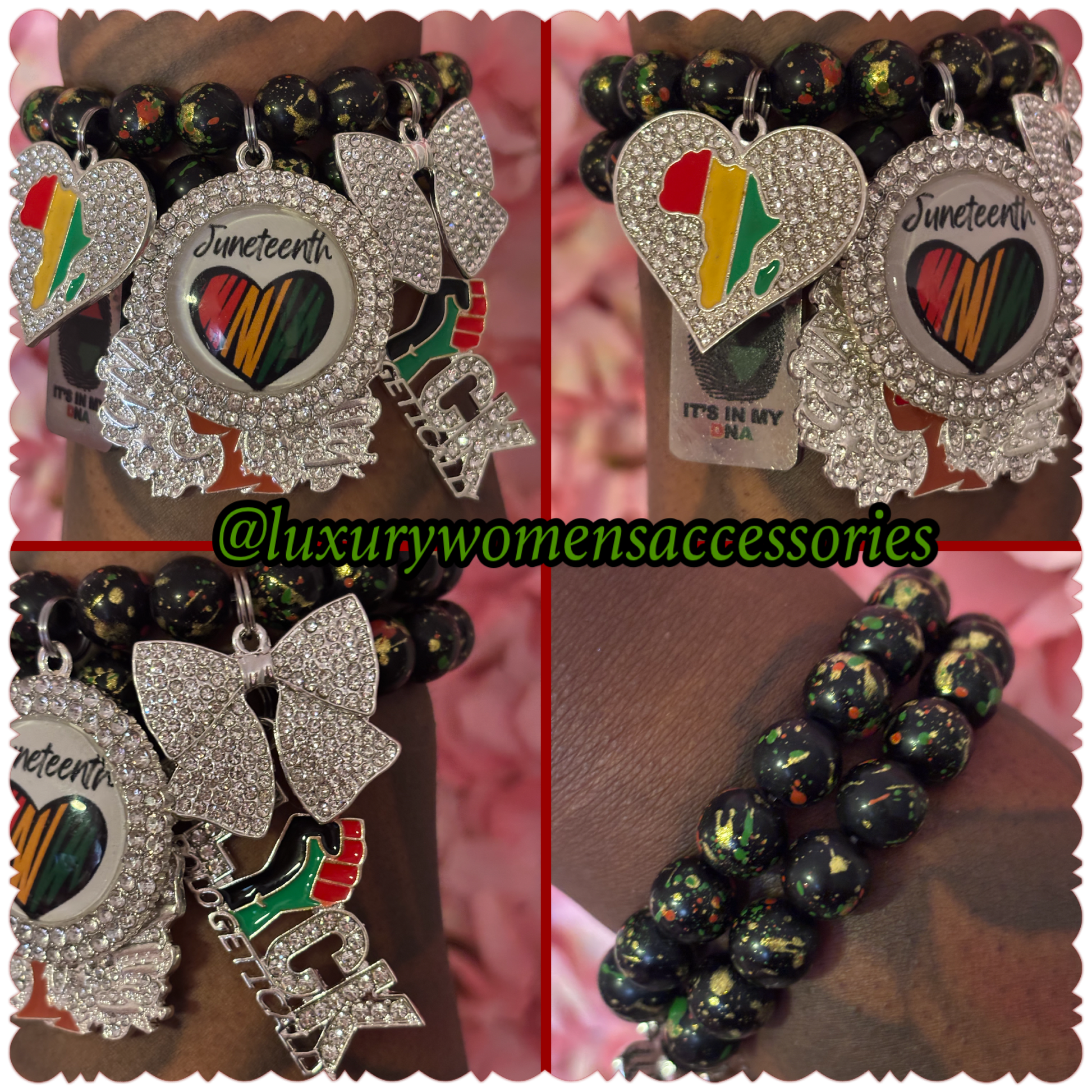 Beautiful set of 2 10MM beaded bracelets for a beautiful queen proudly representing their African American culture, bracelets fit size 7-7 1/2 inch wrist. IF YOU NEED A DIFFERENT SIZE ADD SIZE ADJUSTMENT TO ORDER, WILL NOT BE ADJUSTED WITHOUT ADDING SIZE ADJUSTMENT!!!