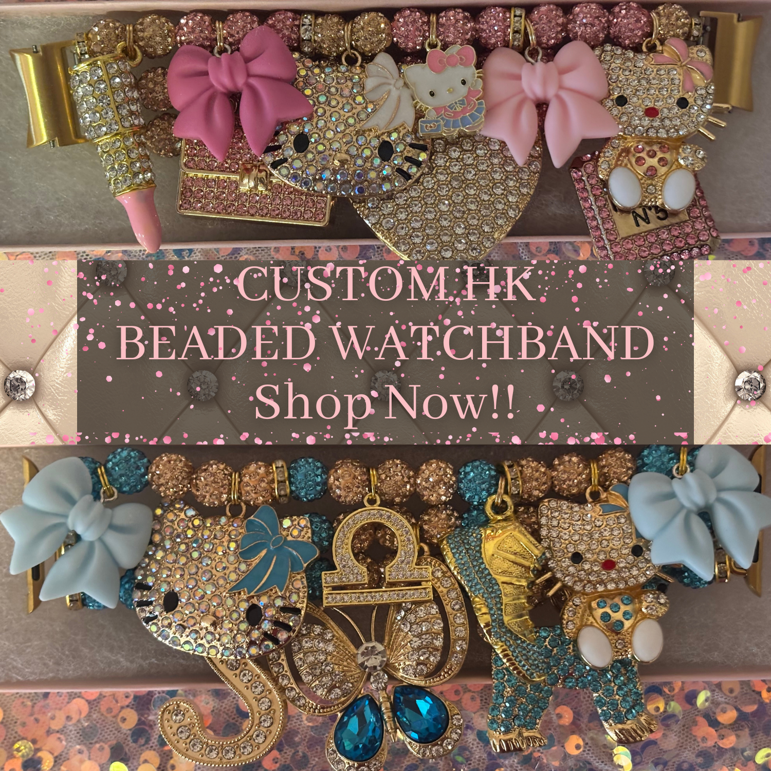 Beautiful luxurious gold/pink beaded watch with matching HK charms, Perfect for HK lovers💛🩷(CHARMS WILL DIFFER ON EACH WATCHBAND!!!!)