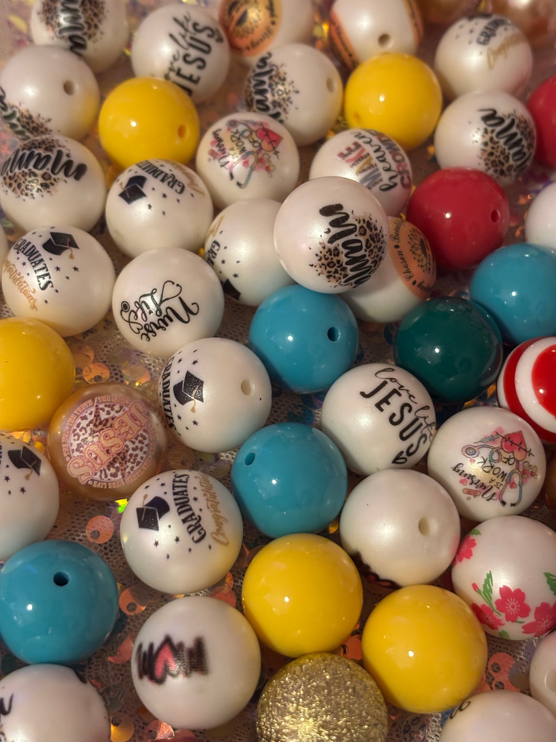 A variety of solid and printed beads randomly picked!!! Set of 10